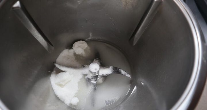 - En el vaso echamos el azúcar, el agua y sin poner el cubilete programamos 7 minutos, temperatura 120º grados a velocidad 1.