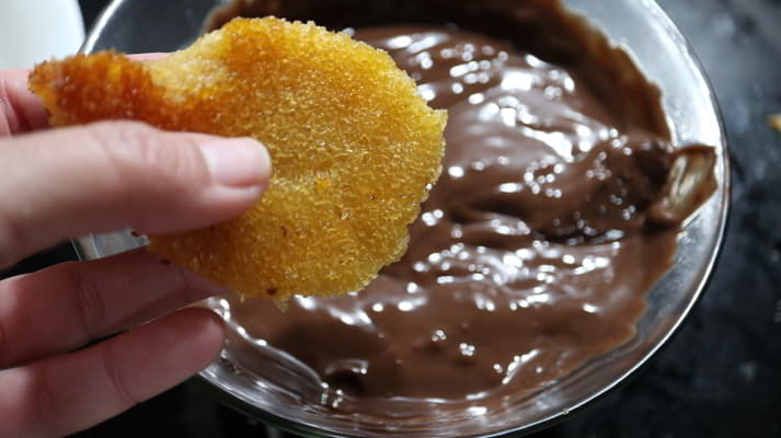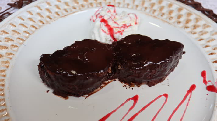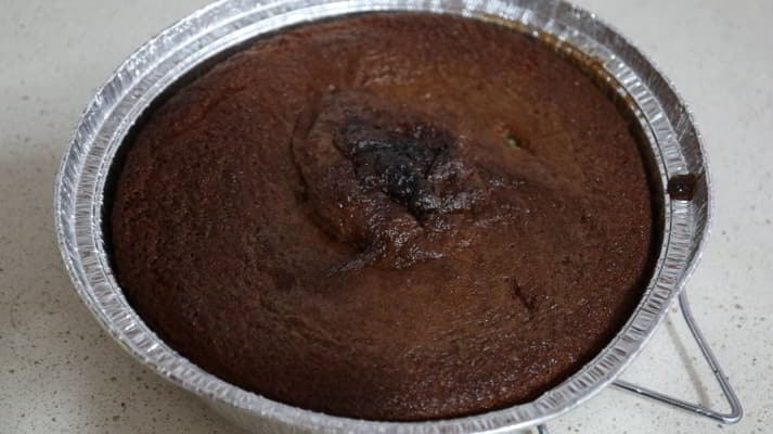 - Lo siguiente que vamos a hacer, es bañar nuestro bizcocho en chocolate y dejarlo enfriar.